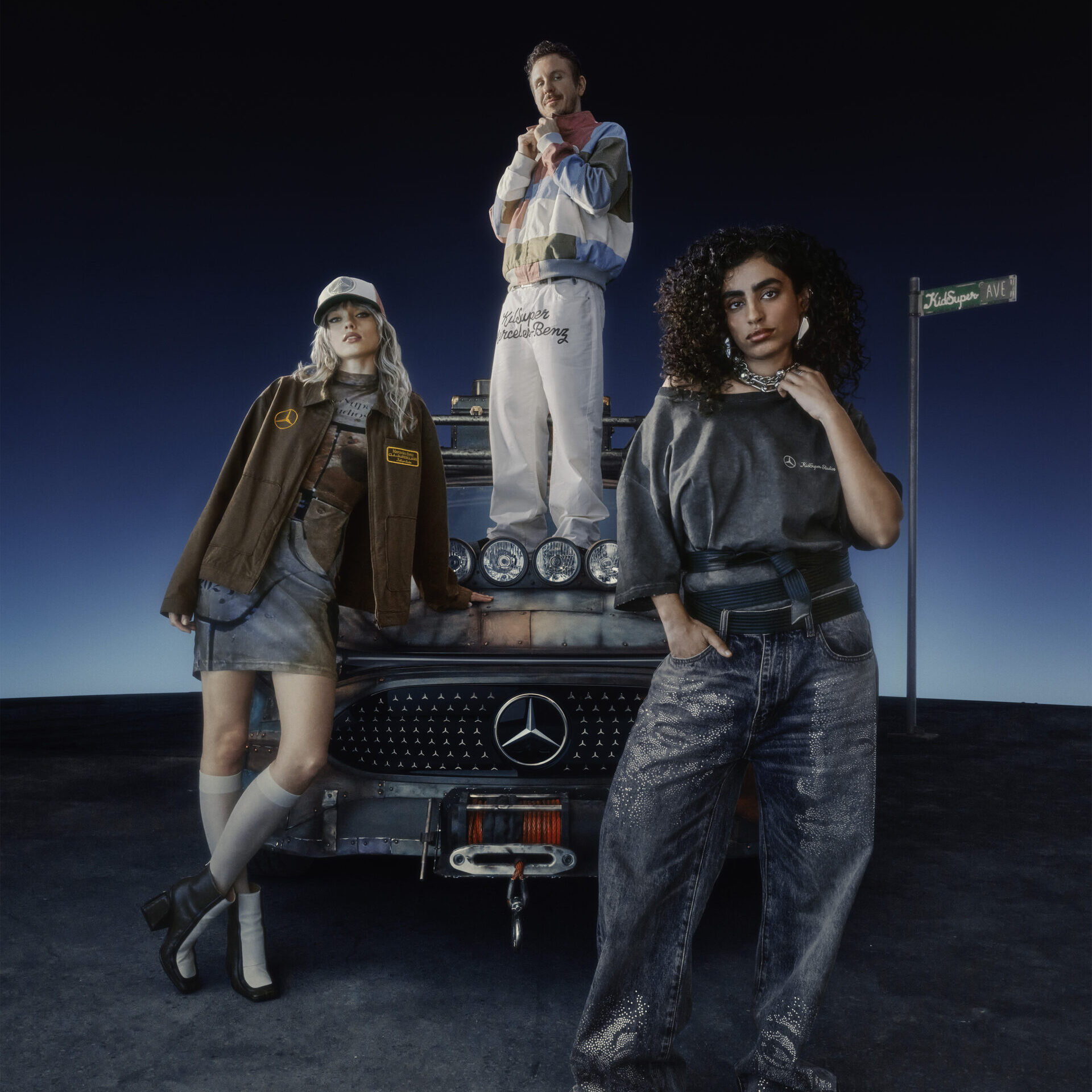 為了將 Mercedes-Benz CLA 貫穿整個設計系列,Colm Dillane 還植入汽車元素到一共 13 款衣物單品中,系列散發繽紛色彩與吸睛的視覺美學設計,再揉合 KidSuper 的經典玩味主義格,完美把復古剪裁穿梭在美式休閒服飾之間,為 Racecore 造型展示出前所未見的時尚藝術結構。