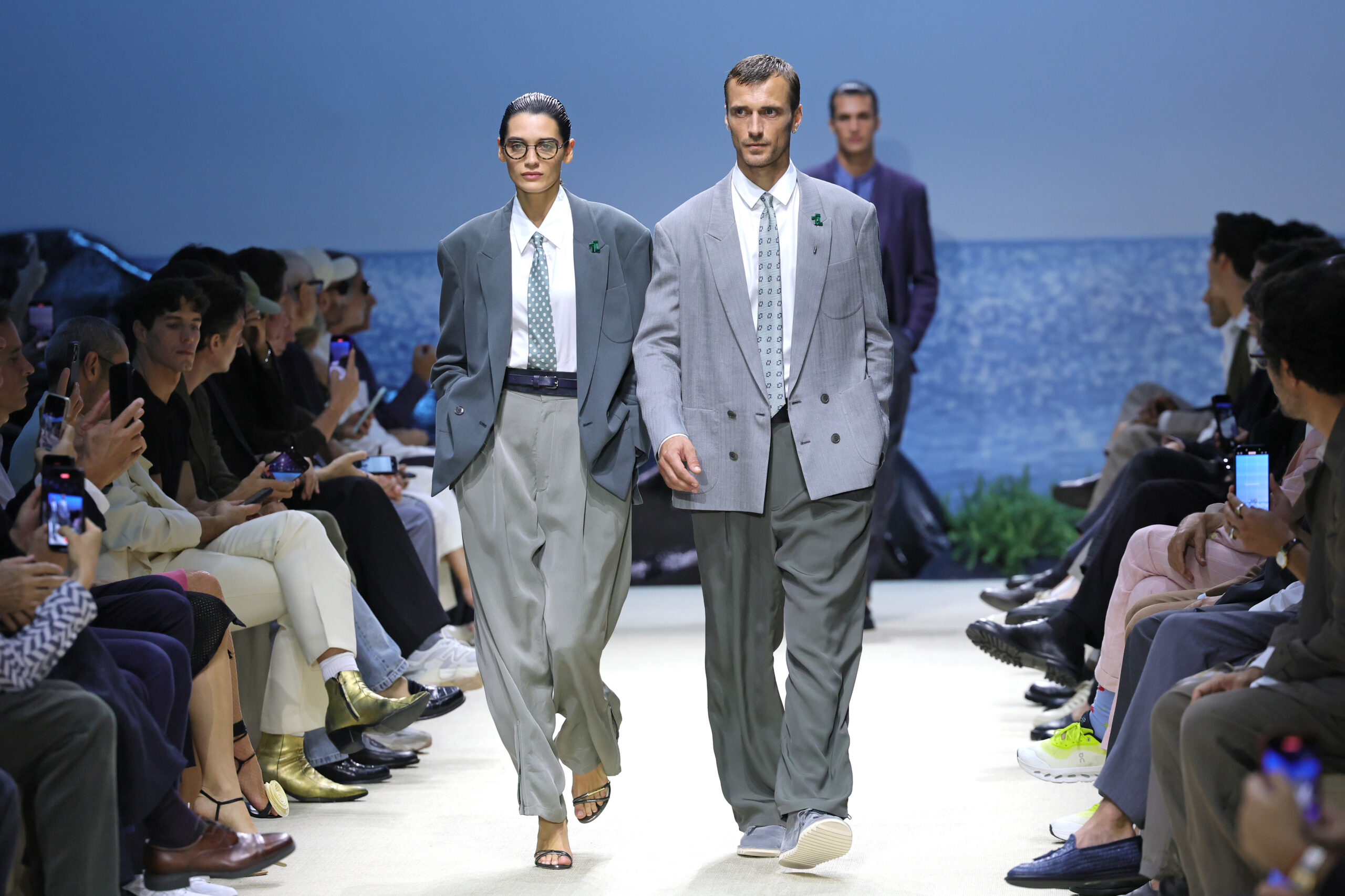 此外,Paul Smith 2026 春夏系列延續英式紳士風範,繼續運用七彩色系製作西裝服;Emporio Armani 與 EA7 也融入了民族元素,呈現從奢華到機能的多元風格,突然傳統男士造型框框;Vivienne Westwood 以叛逆的當代紳士風範驚艷米蘭,創作靈感從早期文藝復興到大旅行時代,英國人如何沉醉在地中海的生活方式,再轉化成意大利的個人風格;意大利奢華男裝品牌 Canali,2026 春夏系列靈感源自 1960 至 70 年代的 GT 賽車元素,致敬同樣來自品牌故鄉的意大利 Brianza 蒙沙國家賽道。多款紳士服飾均偏向鬆弛闊身剪裁,配上皮革、羊毛、麖皮、針織等精緻材質,將競速文化注入一份優雅時尚風;Tod’s 則以「Gommino Club」為靈感,推出舒適休閒春夏系列;最後,Giorgio Armani 2026 春夏系列散發出畫家調色盤的交融對比,將都市與假日、西方與東方、南方與北方編織融合,在輕盈的設計語言中尋得平衡。