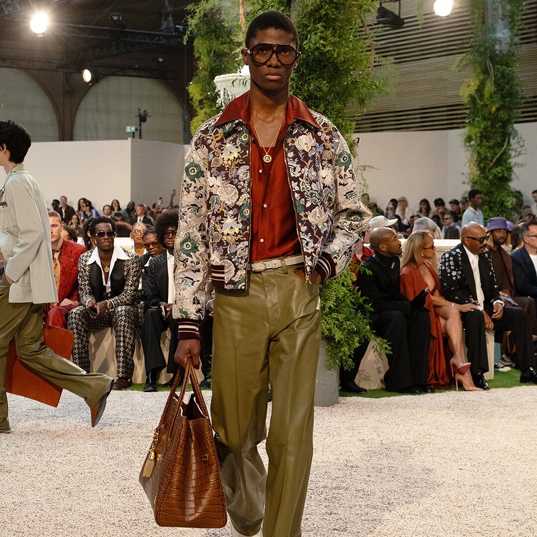 2026 春夏系列,Mike Amiri 引領 AMIRI 品牌以「Chateau AMIRI」為主題,幻想一間致敬好萊塢標誌性酒店的場景,融合復古與現代風格,展現洛杉磯奢華搖滾的自由氣質。騷場設計靈感源自酒店裝飾,單品融入品牌專屬字母圖案、壁紙與傢俱布料的精緻刺繡,結合俐落剪裁的西裝與外套,通過珠飾工藝賦予立體質感,打造充滿加州氣息的正裝系列。