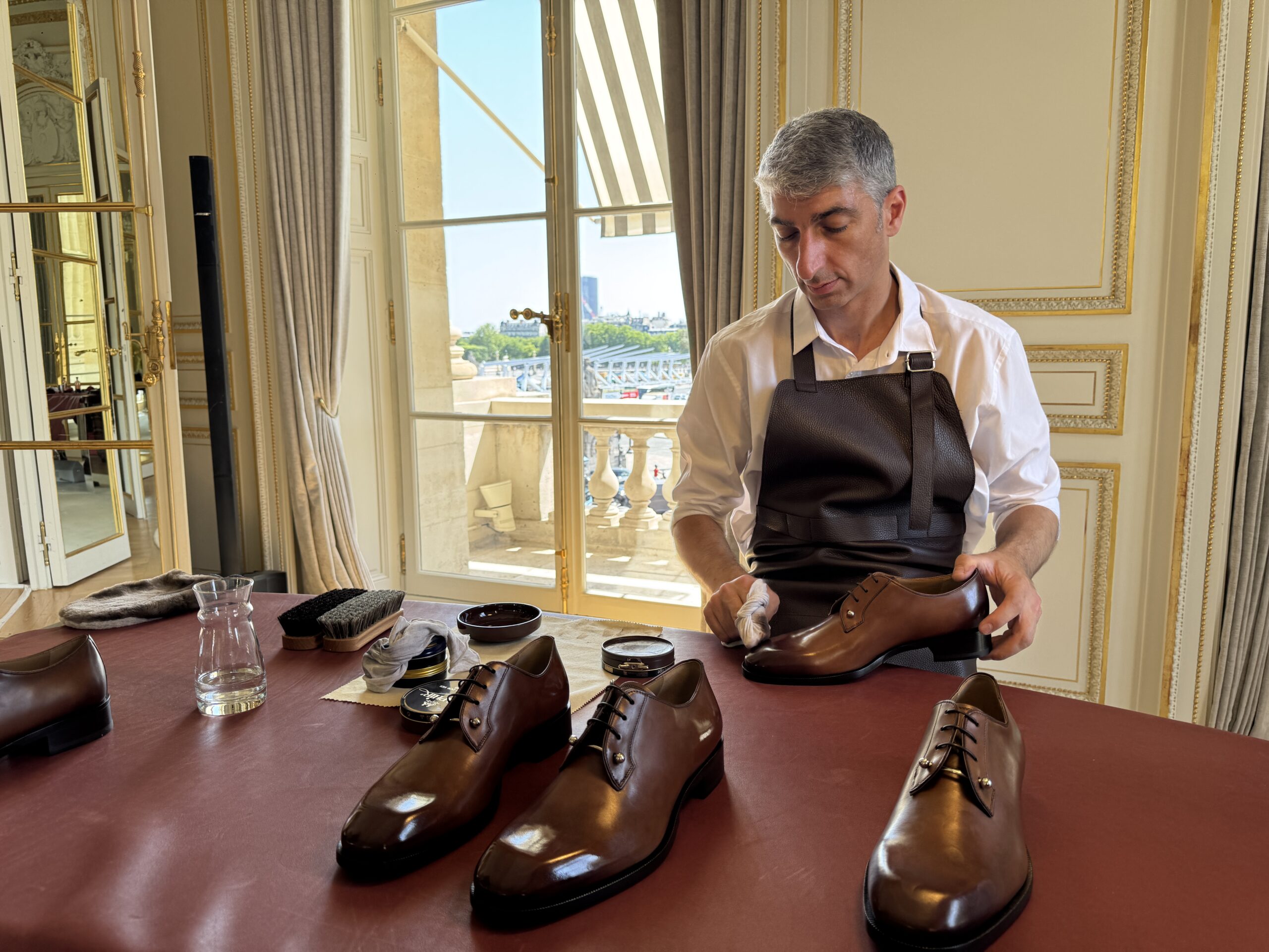 本次 2026 春夏季系列選址歷史悠久的克里永酒店舉行發佈會,現場設有多個精心設計的展示廳,為賓客打造極致的沉浸式體驗。每雙鞋履均陳列於專屬訂製的現代優雅展示櫃中,並由大師級工匠現場展示技藝,凸顯 Sartorial 系列的工藝精神外,亦與酒店的傳統歷史背景相得益彰。